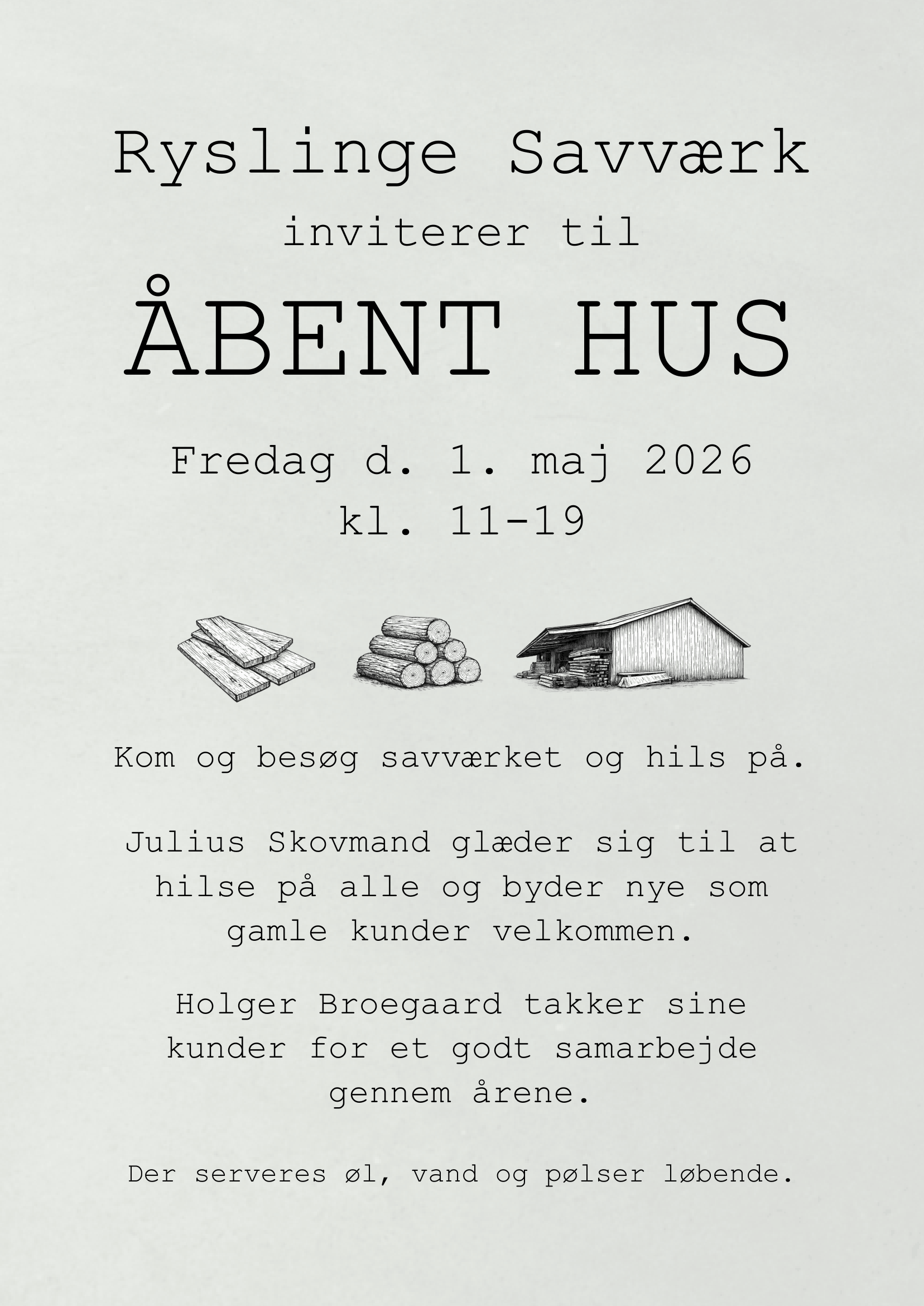 Pr. 1. januar 2026 har Julius Hauch Skovmand overtaget driften af Ryslinge Savværk som forpagter.