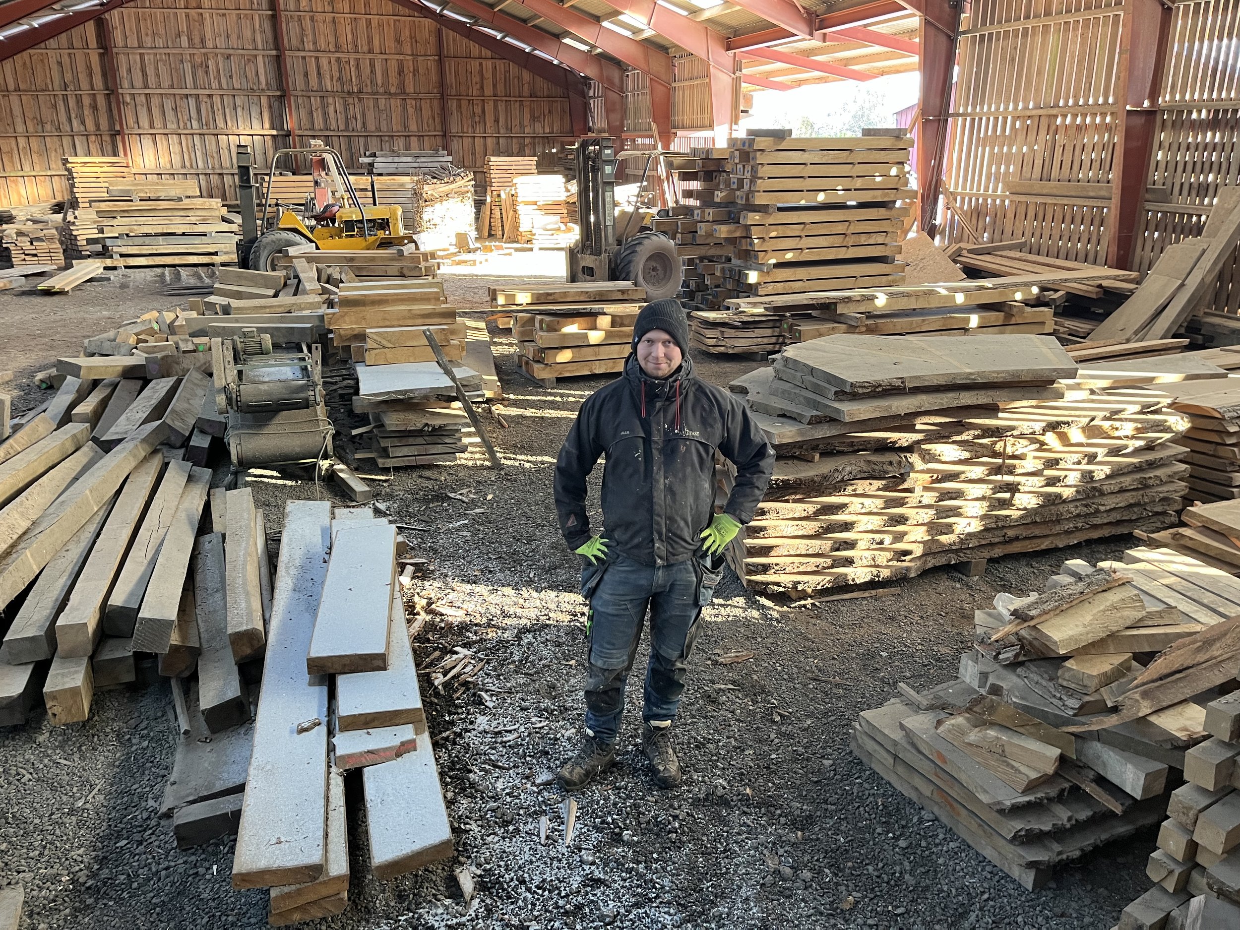 Julius har pr. 1. januar 2026 overtaget driften af savværket i tæt samarbejde med ejer Holger Broegaard, der har ejet savværket siden 2002.